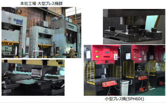 本社工場では主に試作車両に使用する部品の製作を行っており車体骨格部品、懸架系部品、駆動系部品電装部品など多岐にわたるプレス加工に対応しております。